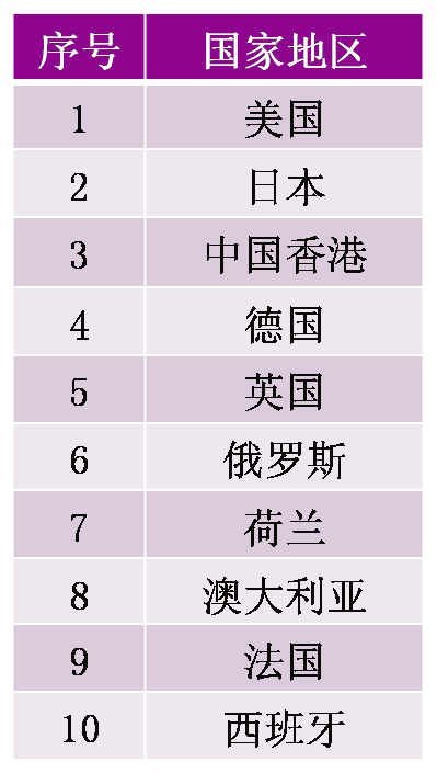 图:2013年前三季度LED照明产品出口国家地区前十名